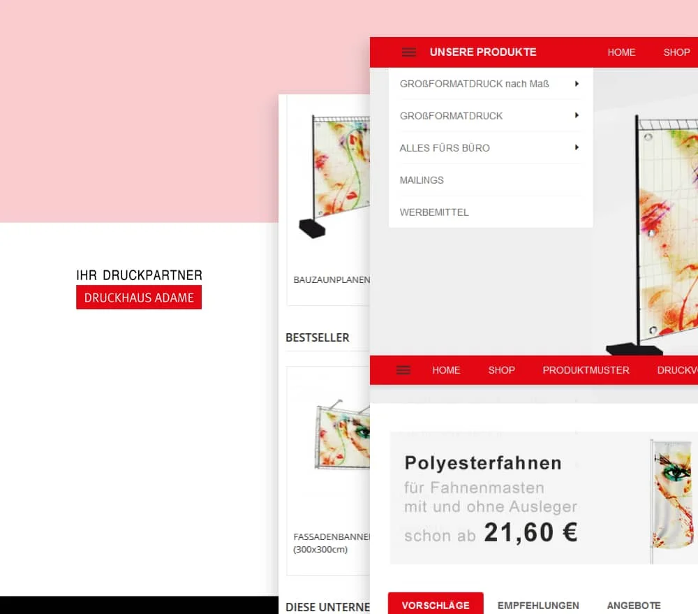 Druckhaus Adame is a renowned name that provides a wide range of advertising solutions ranging from the customized banner to large format printing to offering advertising materials. This e-Commerce store accommodated a set of products and solutions in which their customers can relish a great online shopping experience to their choice.